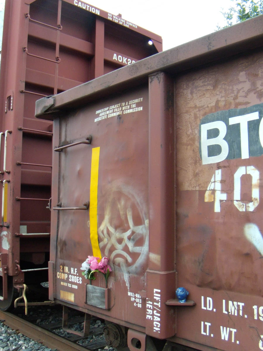 I have a new occupation: Train Florist. The next time you see a train go by, look for flowers. I also put some sculptures on them, as well as Train Children.